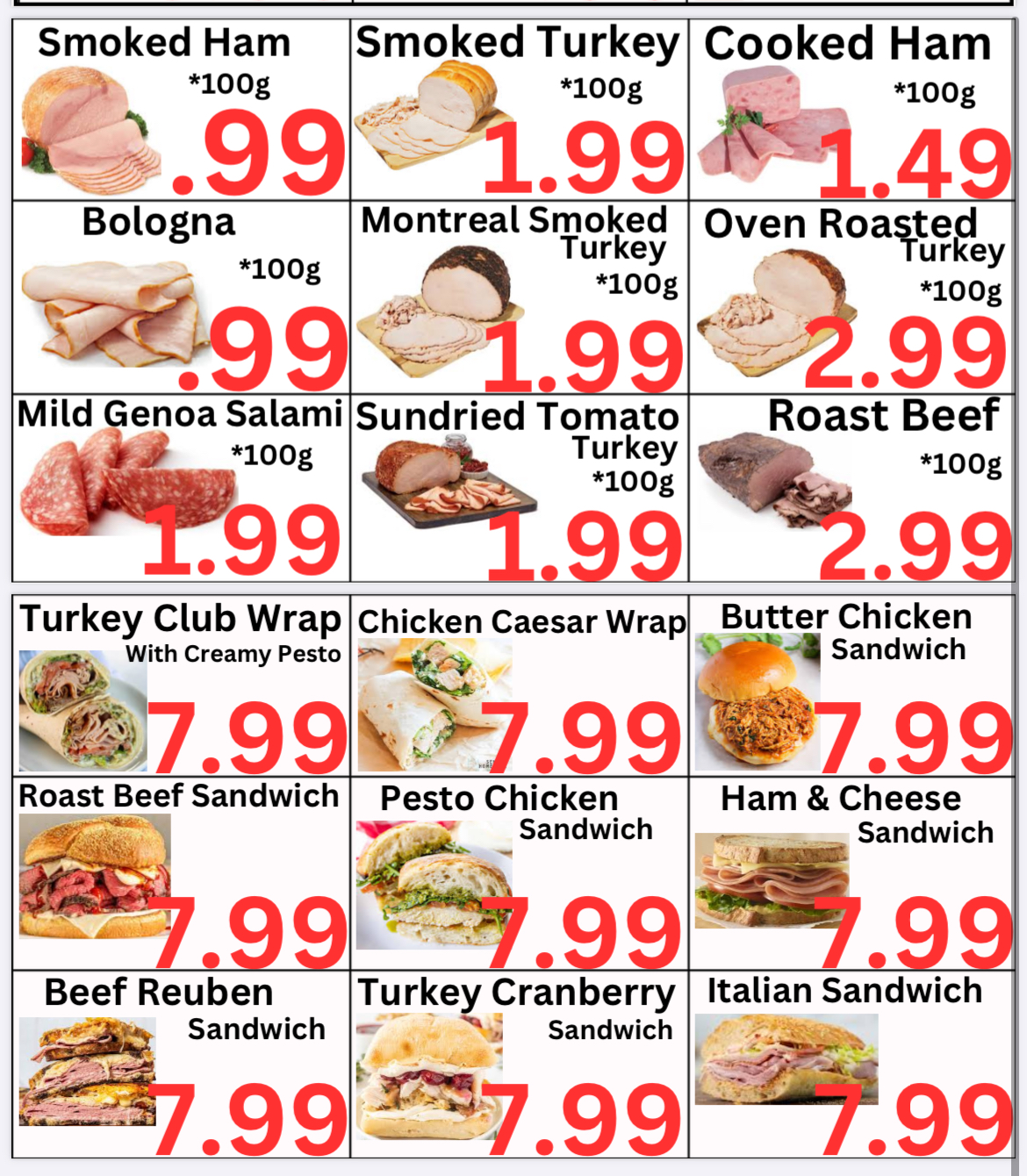 PIZZA,POUTINE,FISH&CHIPS,CHICKEN FINGERS,NUGGETS,WINGS…BUTHCHER FINEST COLD CUT DELI -FRESH AND SLICE ON THE SPOT FOR YOU…